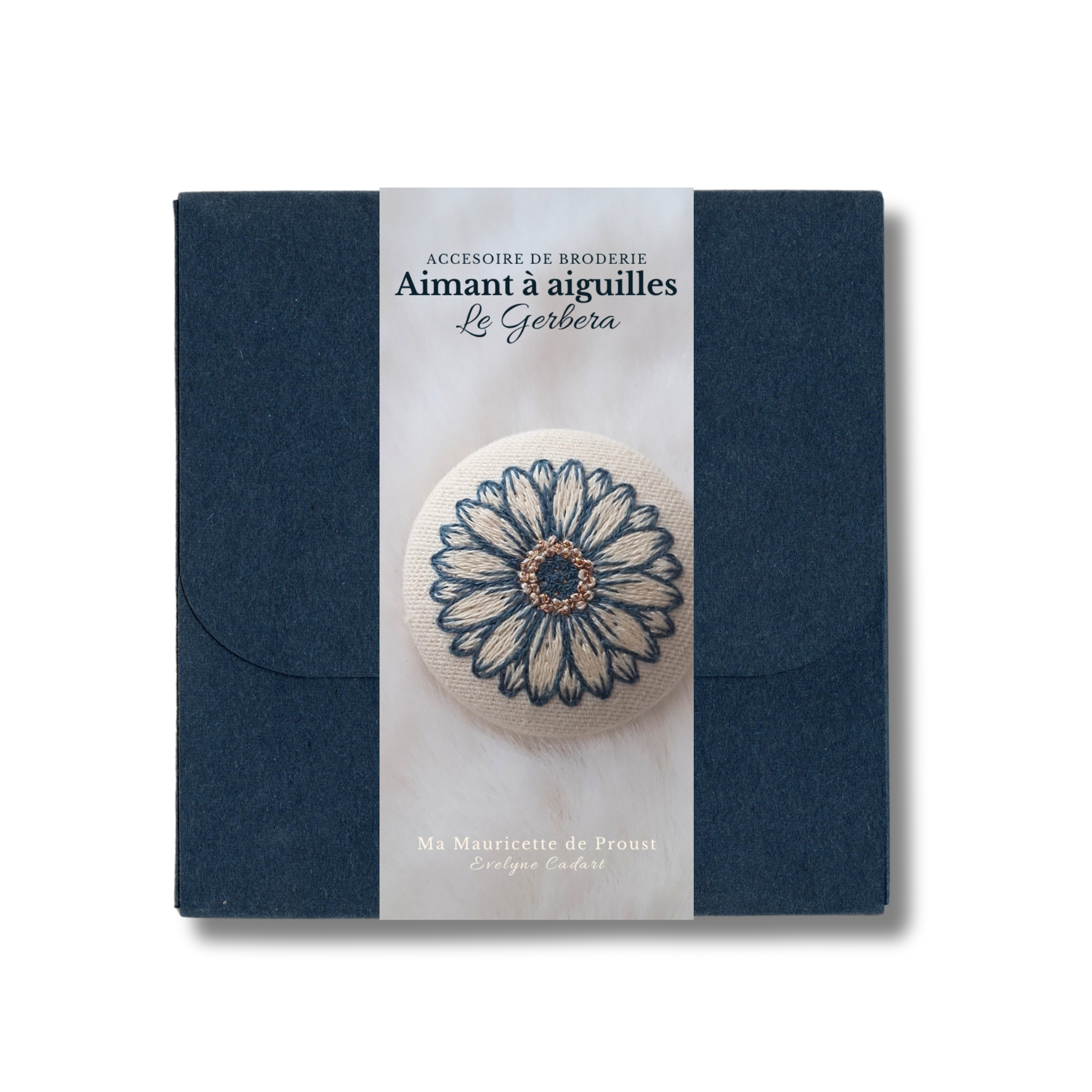 Avec sa gerbera délicatement brodée, ce needle minder allie charme floral et utilité, un indispensable pour garder vos aiguilles à portée de main.