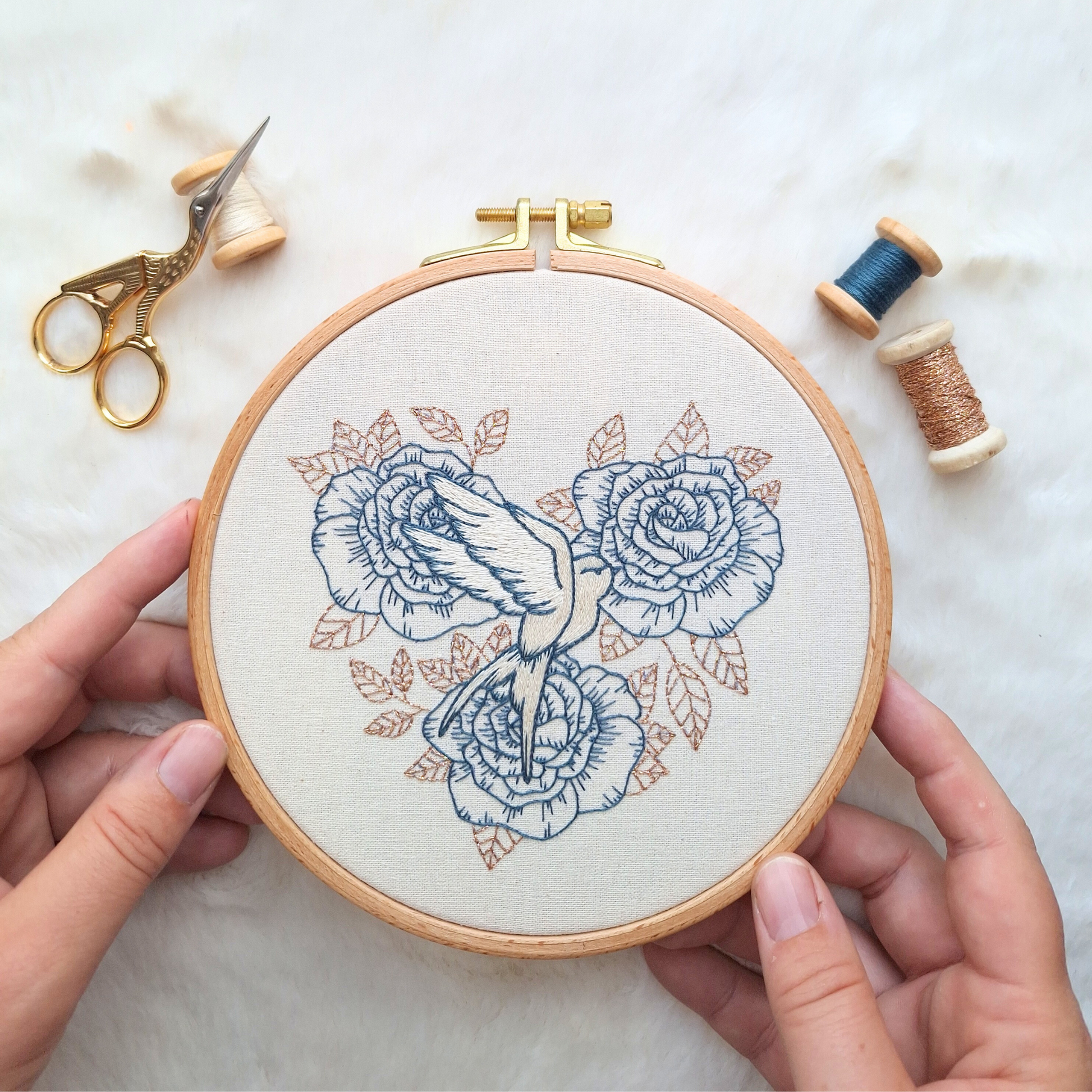 - Le motif à broder : Le motif est disponible en deux tailles : pour un tambour à broder de 16 cm et de 19 cm. Vous êtes libre de choisir celle qui convient le mieux à vos envies ou futur projet.
