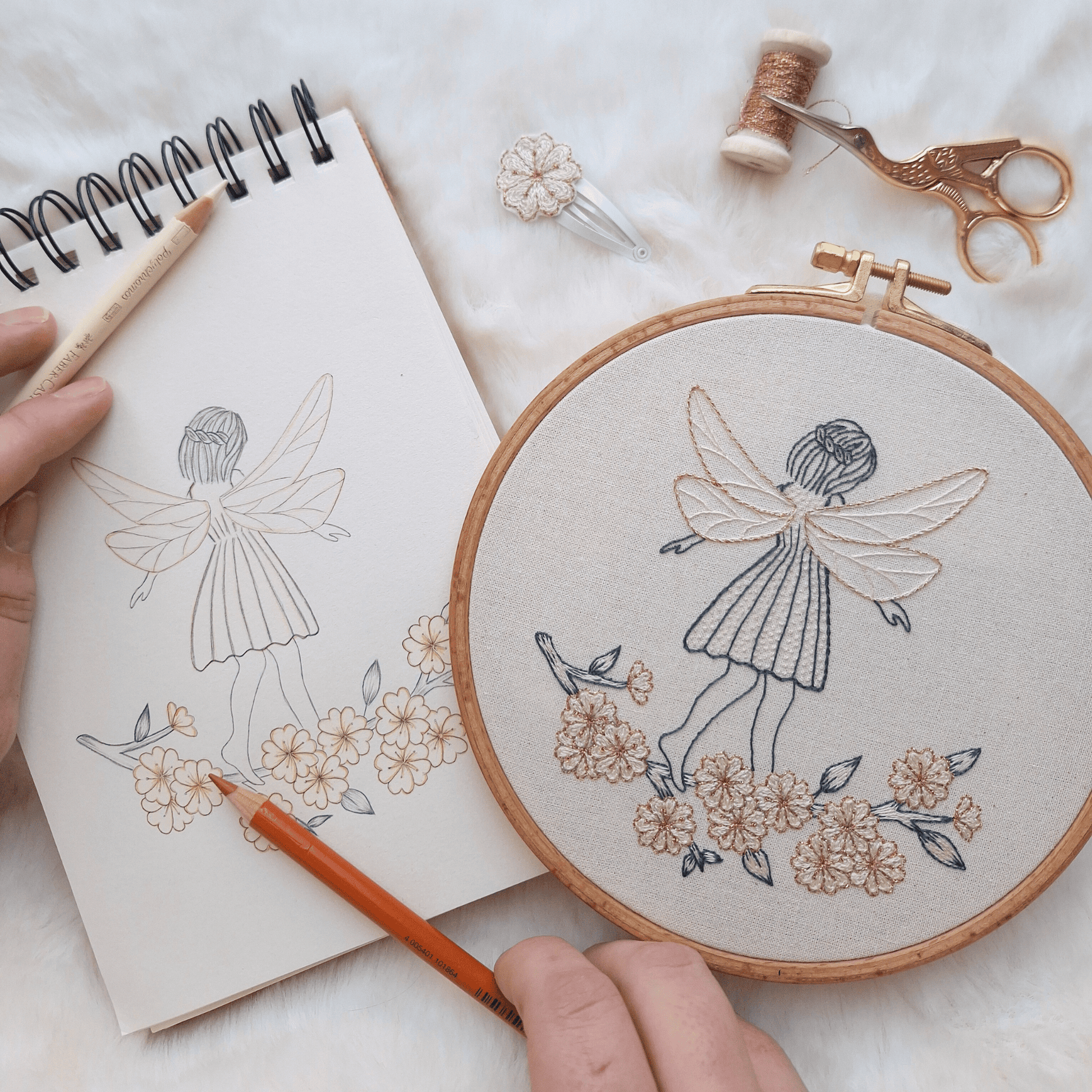 Le motif à reporter est disponible en deux tailles : pour un tambour à broder de 16 cm et de 19 cm. Vous êtes libre de choisir celle qui convient le mieux à vos envies ou à votre projet.