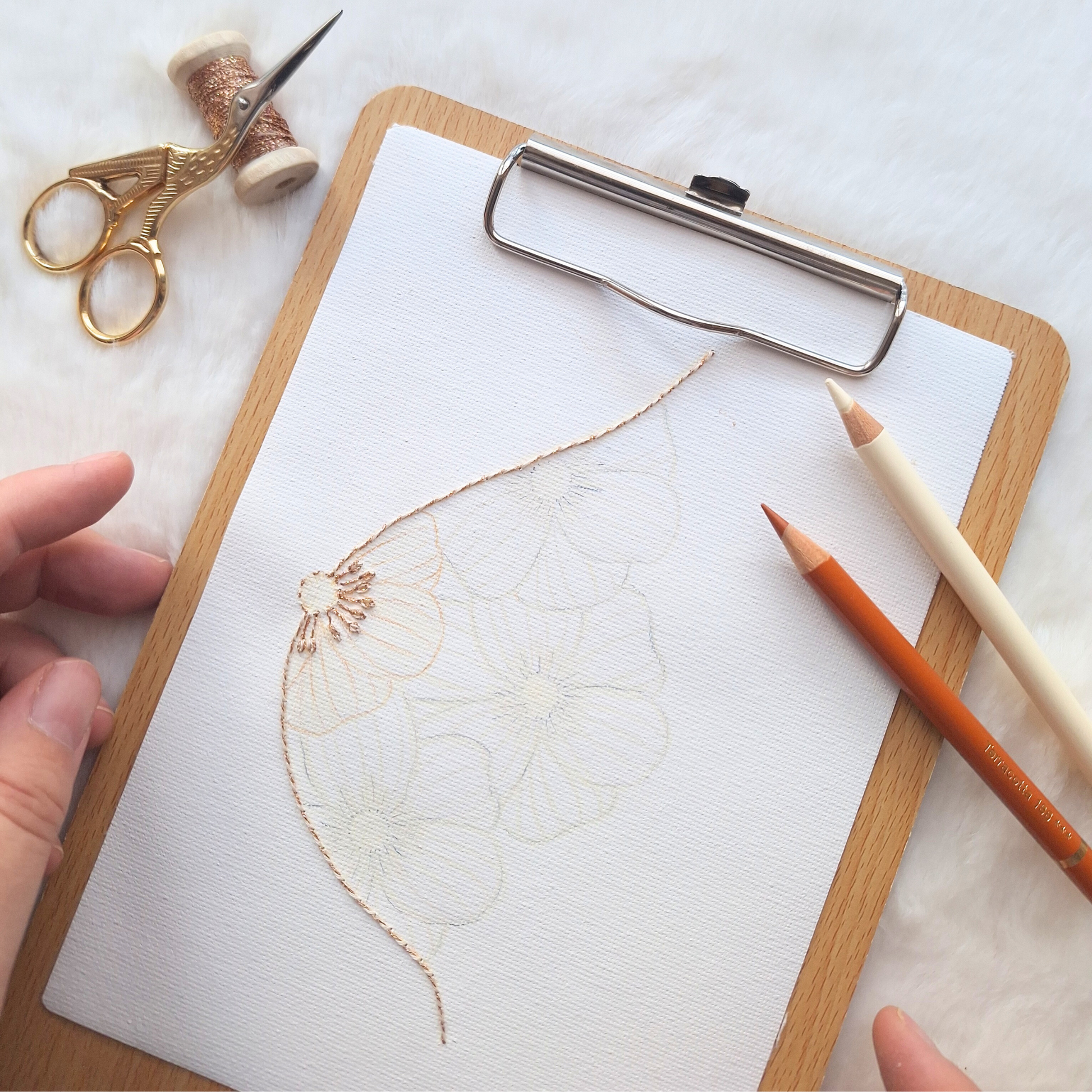 Le motif à reporter est disponible en deux tailles : pour un tambour à broder de 16 cm et de 19 cm. Vous êtes libre de choisir celle qui convient le mieux à vos envies ou à votre projet.