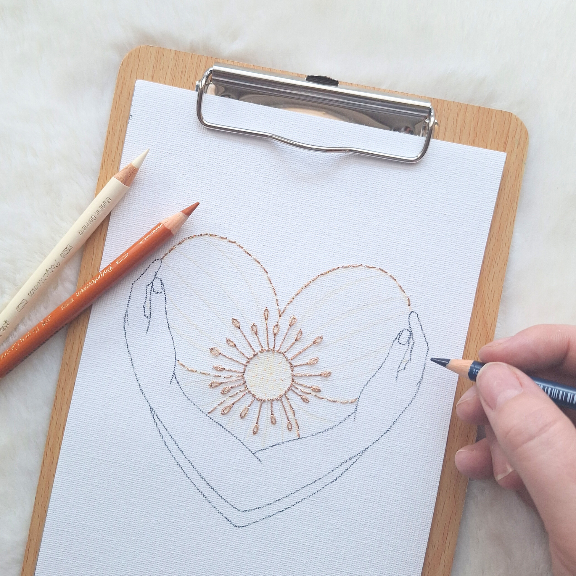 Le motif à reporter est disponible en deux tailles : pour un tambour à broder de 16 cm et de 19 cm. Vous êtes libre de choisir celle qui convient le mieux à vos envies ou à votre projet.