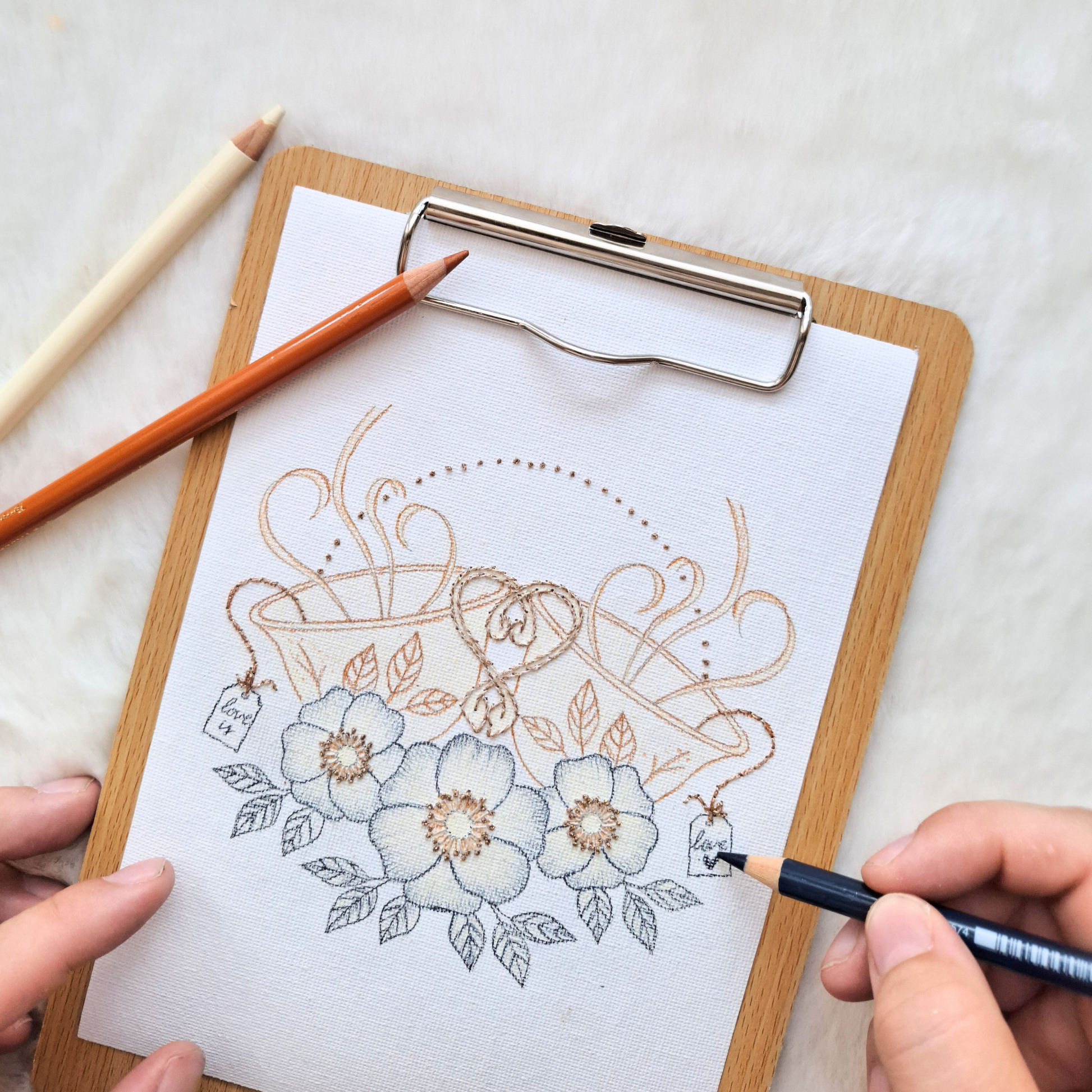 Le motif à reporter est disponible en deux tailles : pour un tambour à broder de 16 cm et de 19 cm. Vous êtes libre de choisir celle qui convient le mieux à vos envies ou à votre projet.